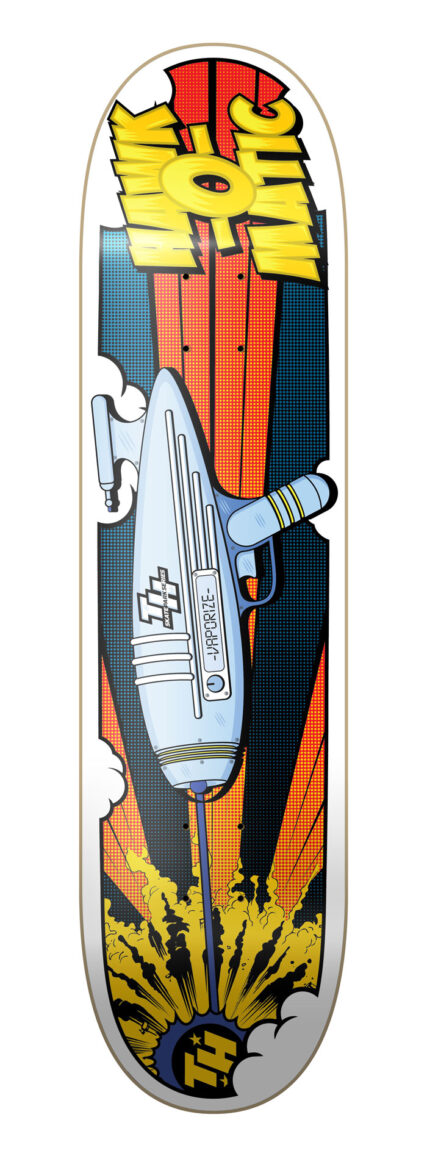 Blast off into the future with this retro-futuristic “Ray Gun” design! Bright colors and comic-style energy beams give this deck a playful sci-fi vibe that kids will love. It’s like a Saturday morning cartoon on wheels—perfect for young shredders who dream big.